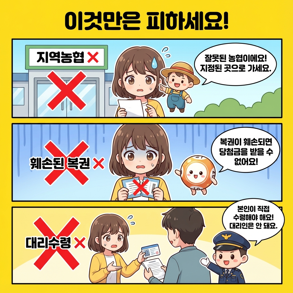 정리하자면, 2등·3등은 농협은행 지점, 4등·5등은 일반 판매점, 1등은 농협은행 본점이에요. 그리고 2등부터는 신분증 필수니까 꼭 챙기시고요!