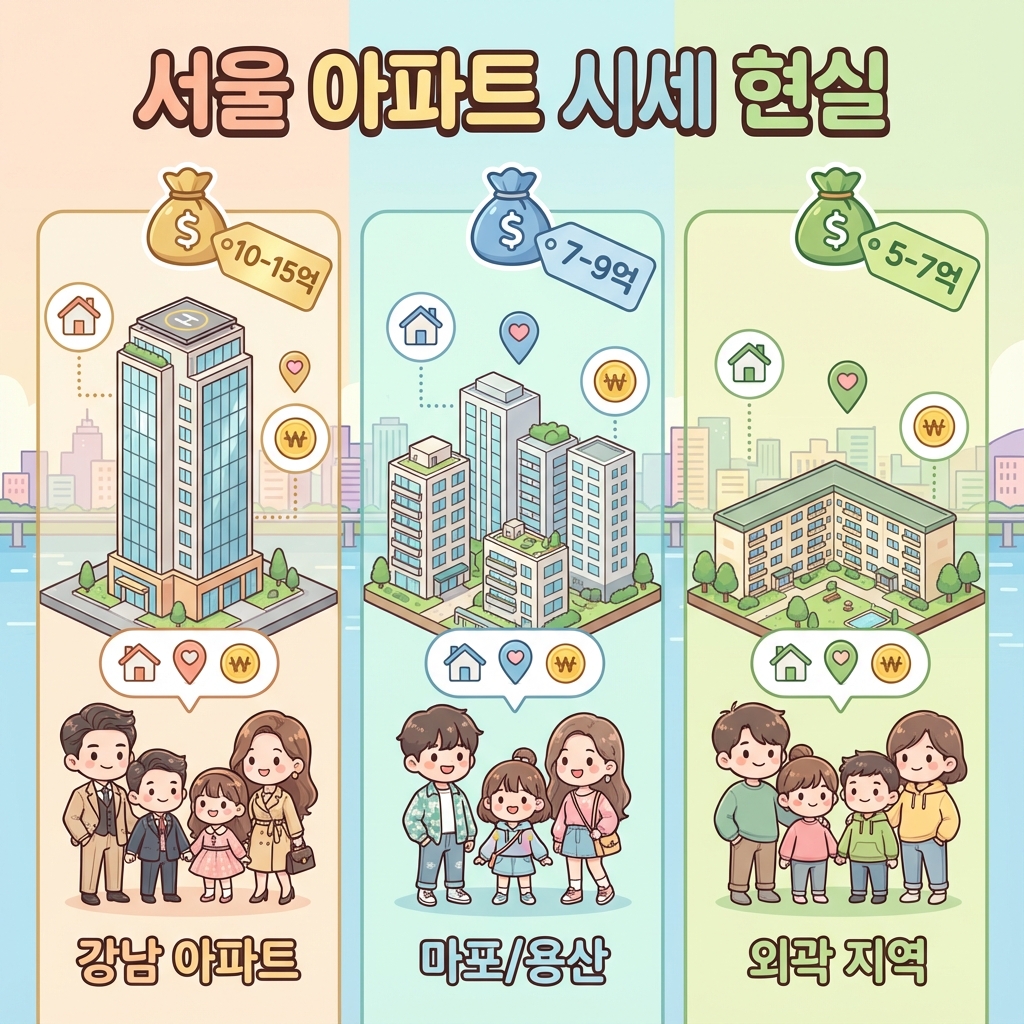 서울 아파트 구매 시 7~10억이 필요하며, 나머지 금액으로 생활비를 충당해야 합니다